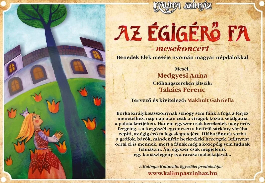 .Minden érdeklődőt szeretettel várunk a Kalimpa Színház zenés bábjátékára: Az égigérö fa.